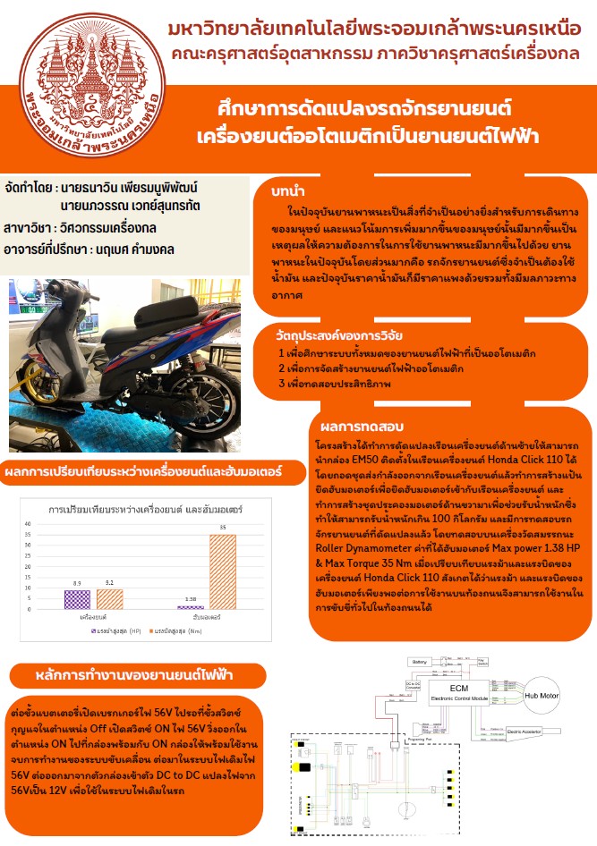 ศึกษาการดัดแปลงรถจักรยานยนต์ เครื่องยนต์ออโตเมติกเป็นยานยนต์ไฟฟ้า