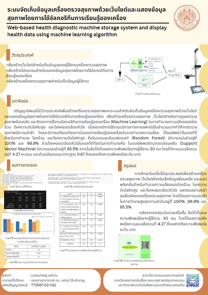 ระบบจัดเก็บข้อมูลเครื่องตรวจสุขภาพด้วยเว็บไซต์และแสดงข้อมูลสุขภาพโดยการใช้อัลกอริทึมการเรียนรู้ของเครื่อง
