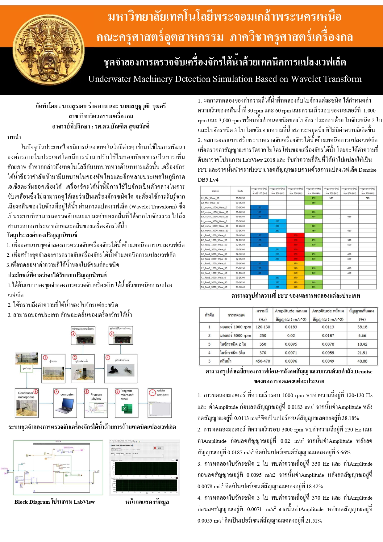 ชุดจำลองการตรวจจับเครื่องจักรใต้น้ำด้วยเทคนิคการแปลงเวฟเล็ต
