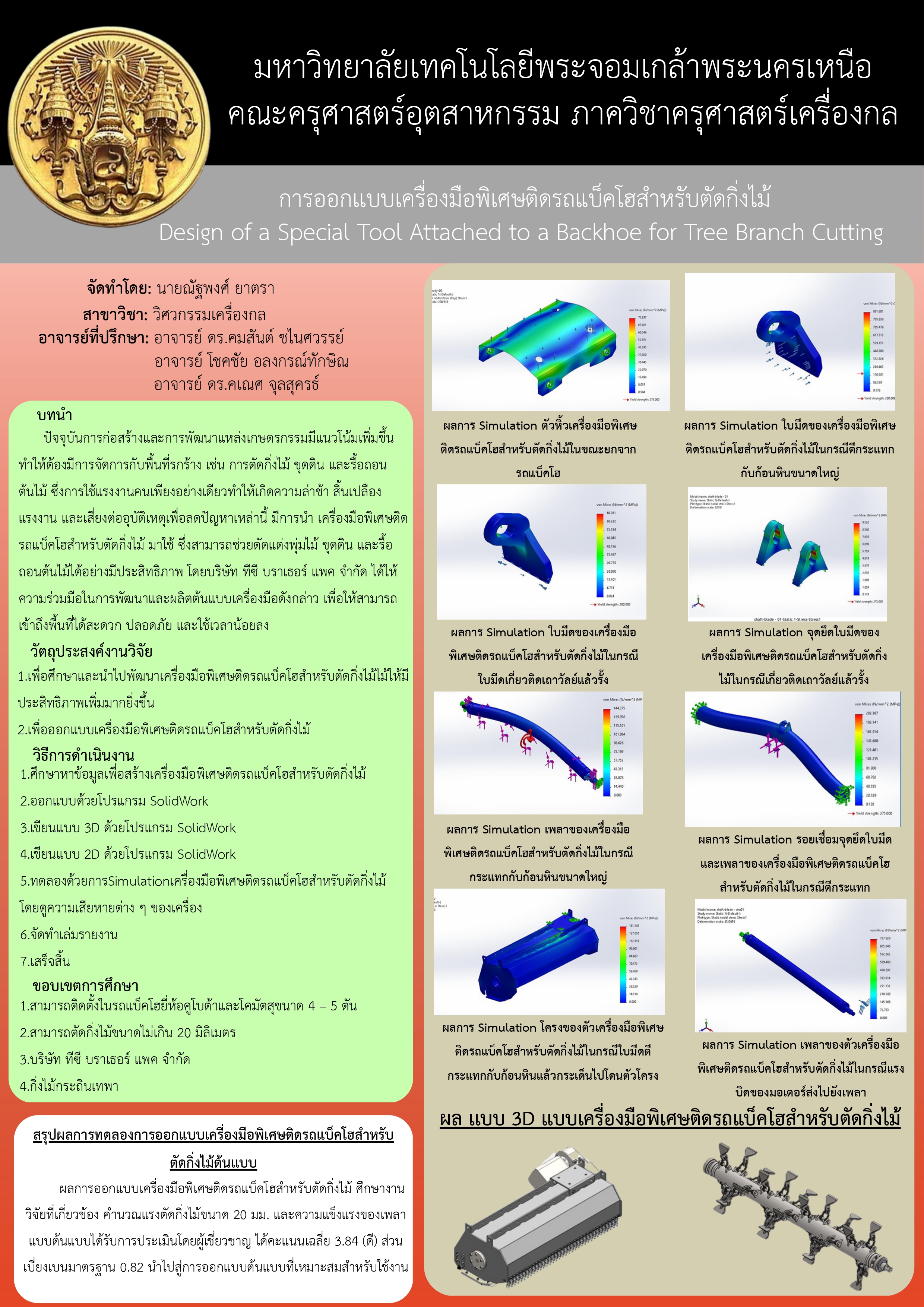 การออกเเบบเครื่องพิเศษติดรถเเบ็คโฮสำหรับตัดกิ่งไม้