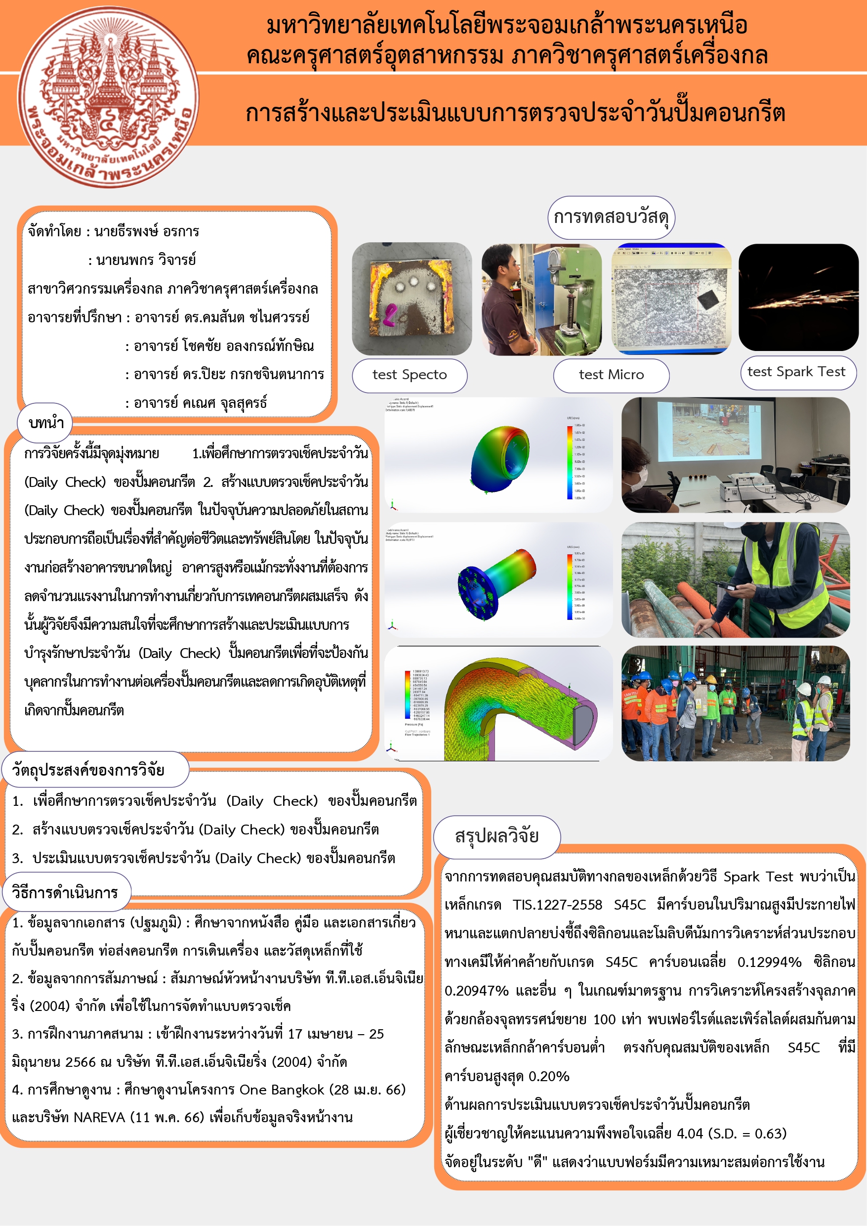การสร้างและประเมินแบบการตรวจประจำวันปั๊มคอนกรีตและท่อส่งคอนกรีต