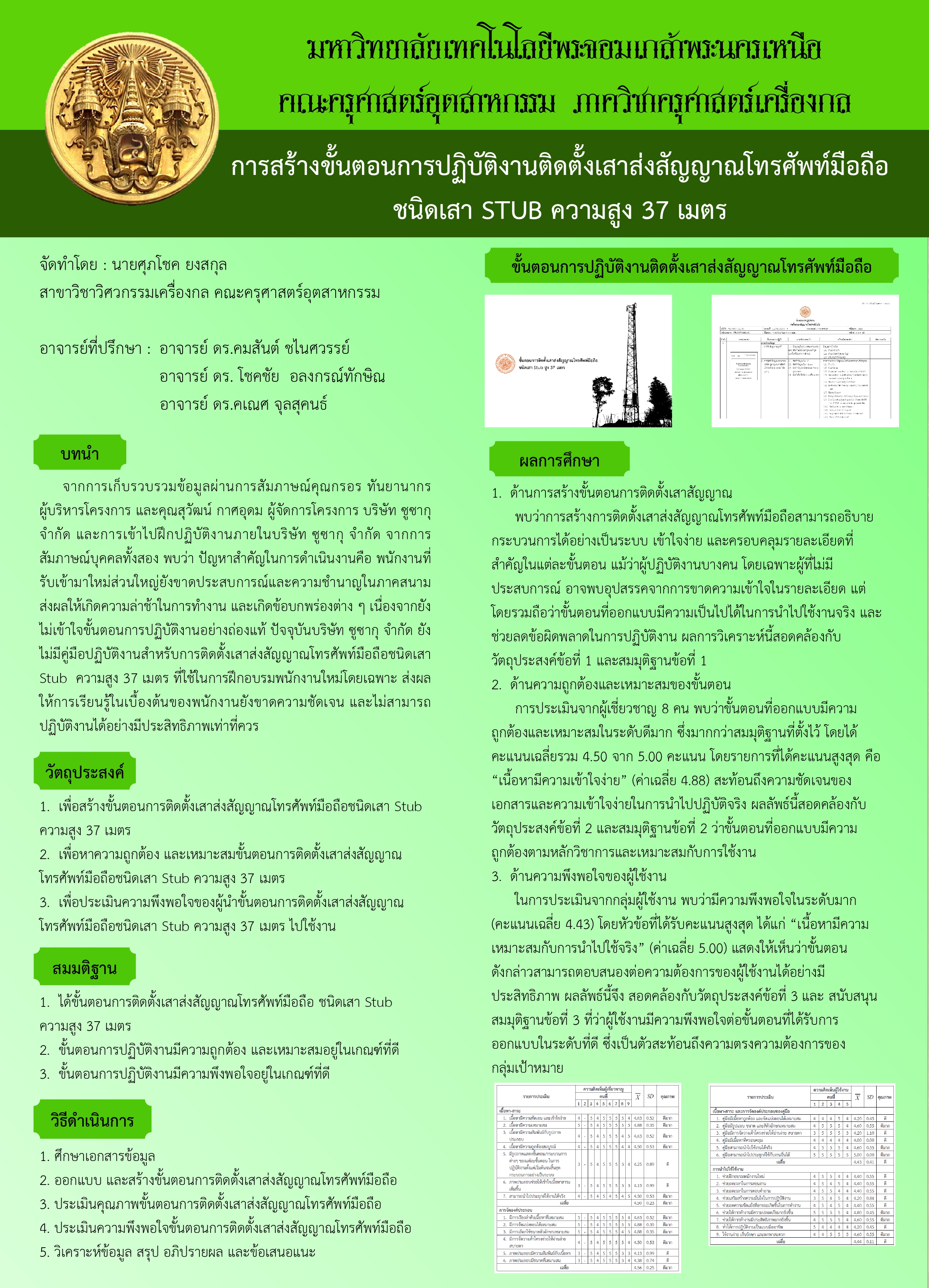 การสร้างขั้นตอนการปฏิบัติงานติดตั้งเสาส่งสัญญาณโทรศัพท์ ชนิดเสา STUB ความสูง 37 เมตร