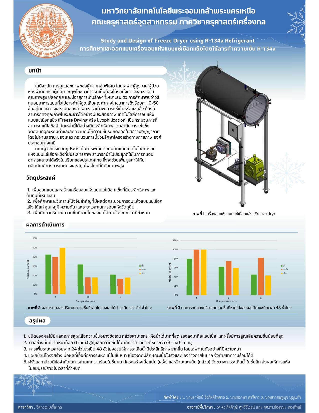 การศึกษาเเละออกเเบบเครื่องอบเเห้งเเบบเเช่เยือกเเข็งโดยใช้สารทำความเย็น R-134a.