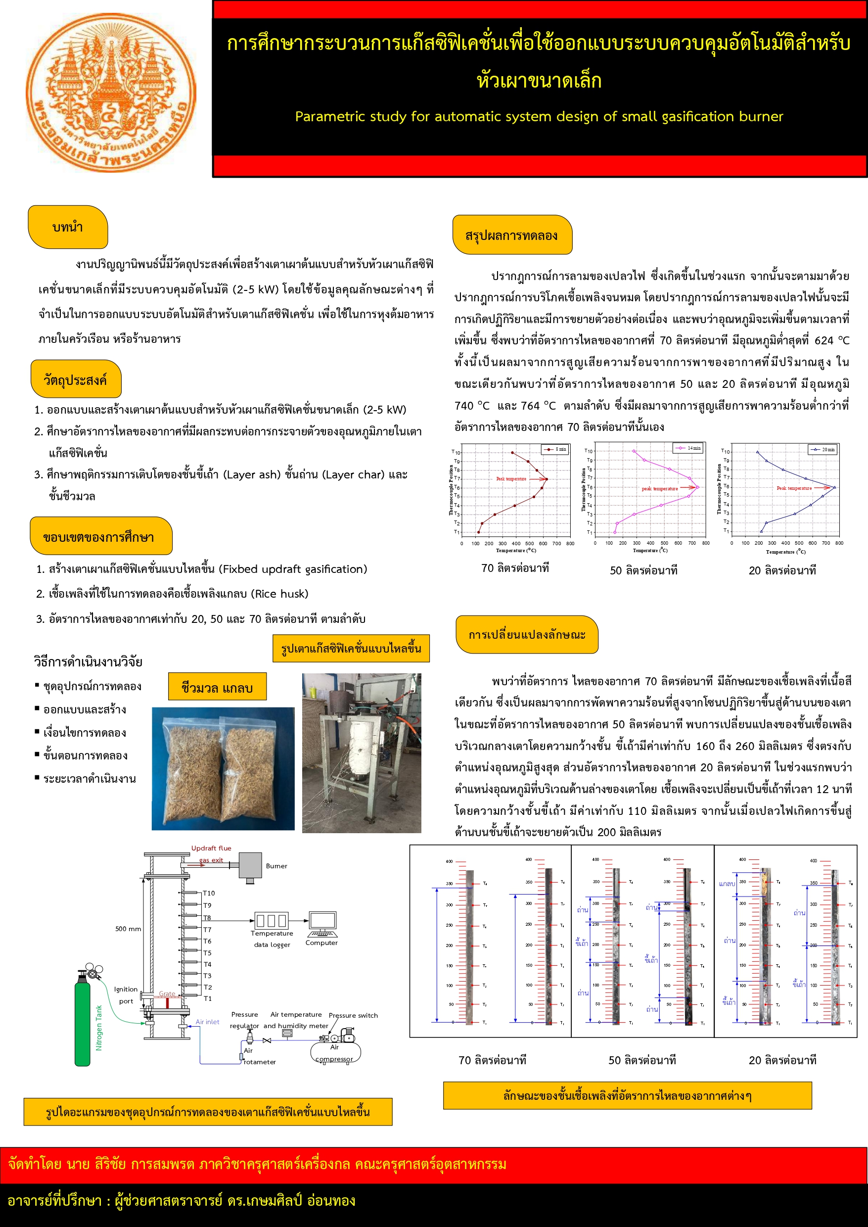 การศึกษากระบวนการแก๊สซิฟิเคชั่นเพื่อใช้ออกแบบระบบควบคุมอัตโนมัติสำหรับหัวเผาขนาดเล็ก