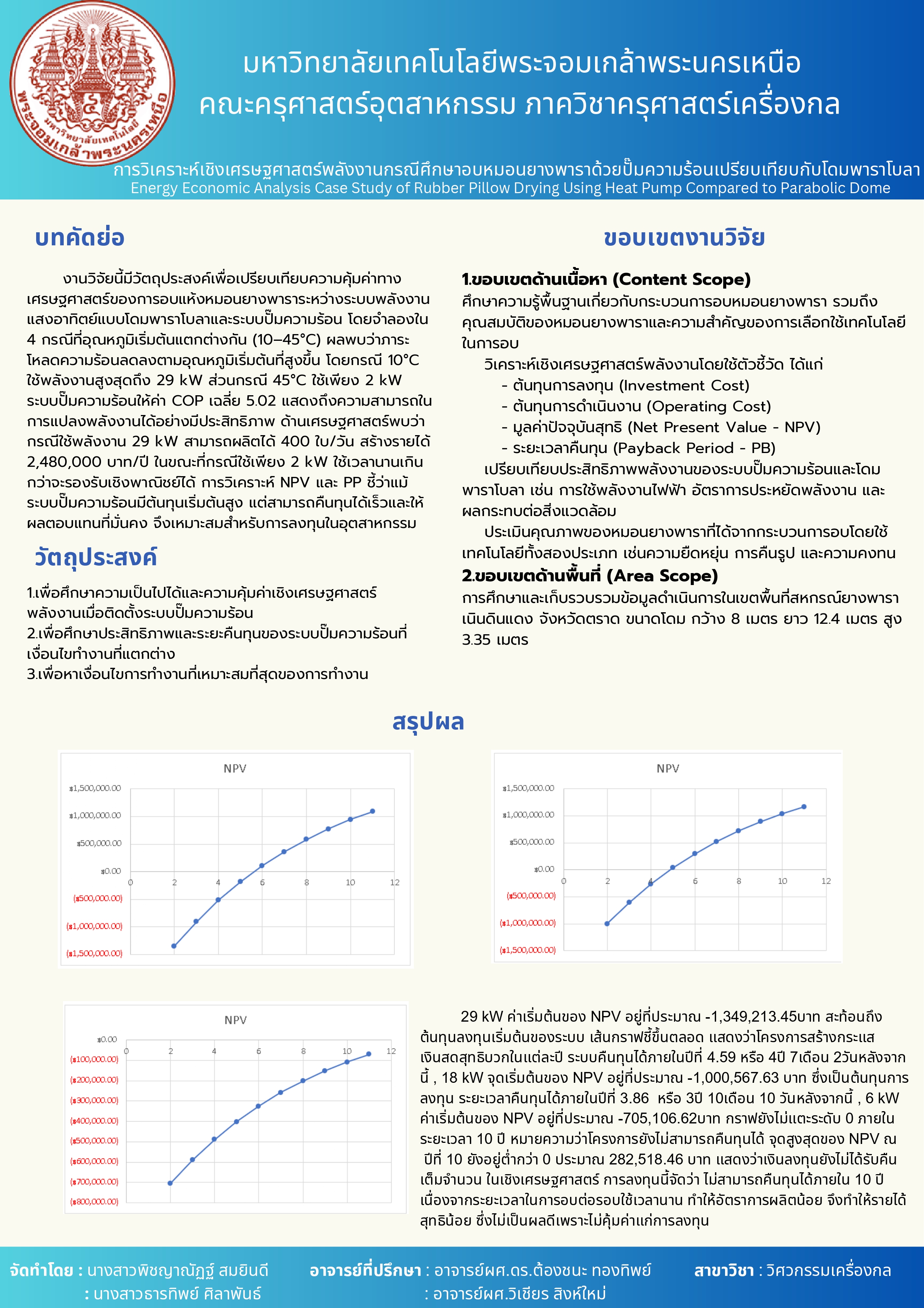 การวิเคราะห์เชิงเศรษฐศาสตร์พลังงานกรณีศึกษาอบหมอนยางพาราด้วยปั๊มความร้อนเปรียบเทียบกับโดมพาราโบลา