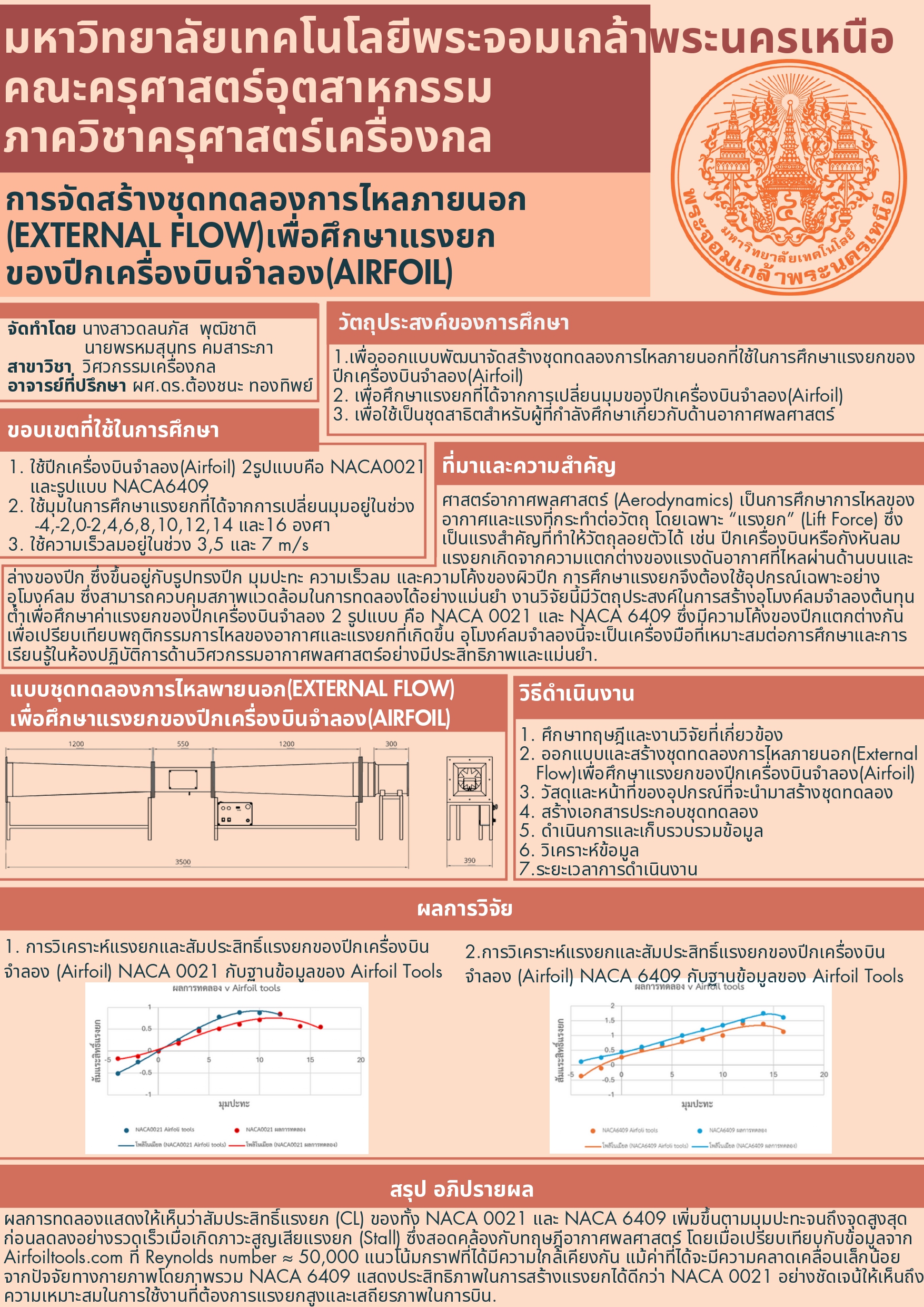 การจัดสร้างชุดทดลองการไหลภายนอก(External Flow)เพื่อศึกษาแรงยกของปีกเครื่องบินจำลอง (Airfoil)