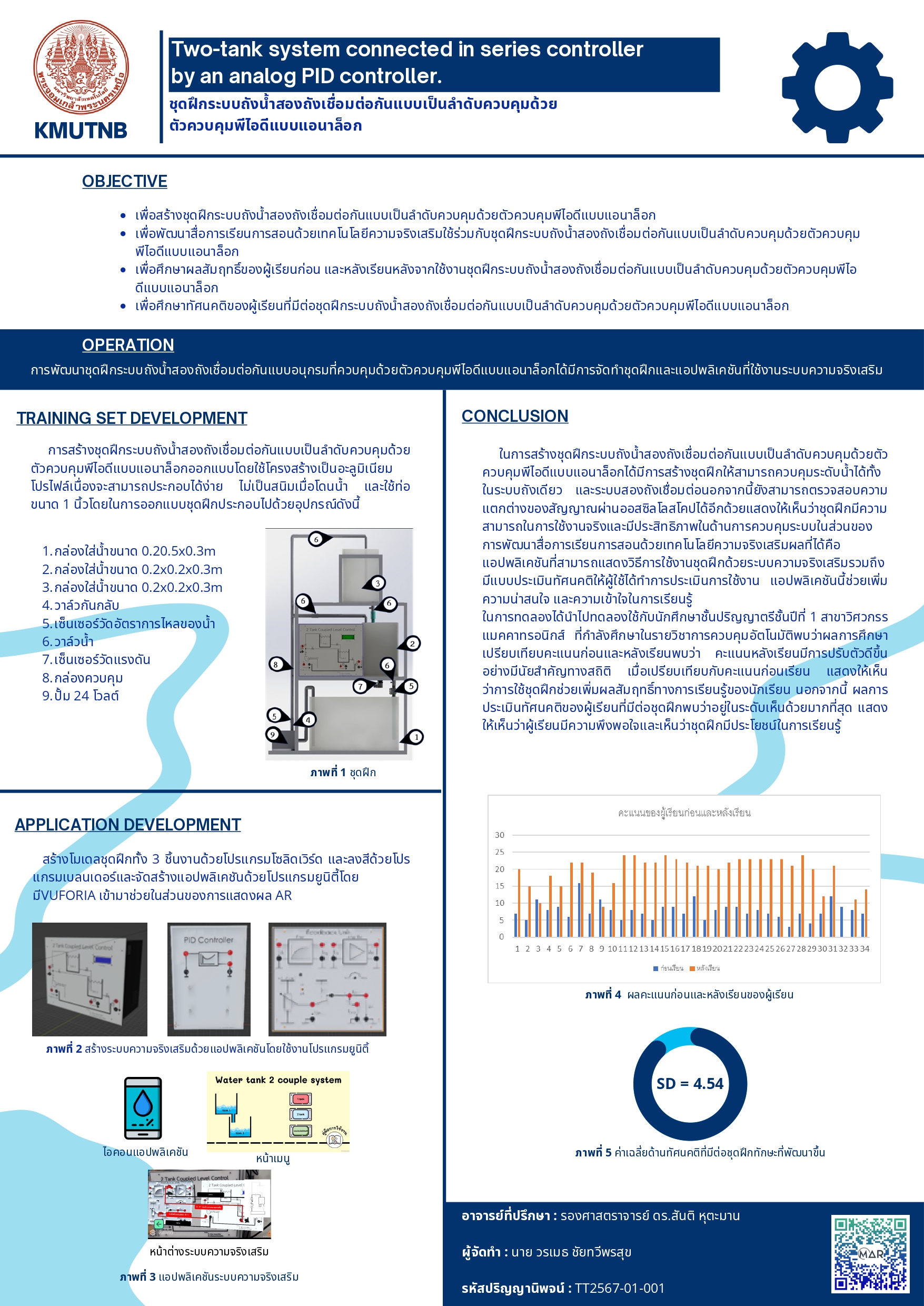 ชุดฝึกระบบถังน้ำสองถังเชื่อมต่อกันแบบเป็นลำดับควบคุมด้วยตัวควบคุมพีไอดีแบบแอนาล็อก