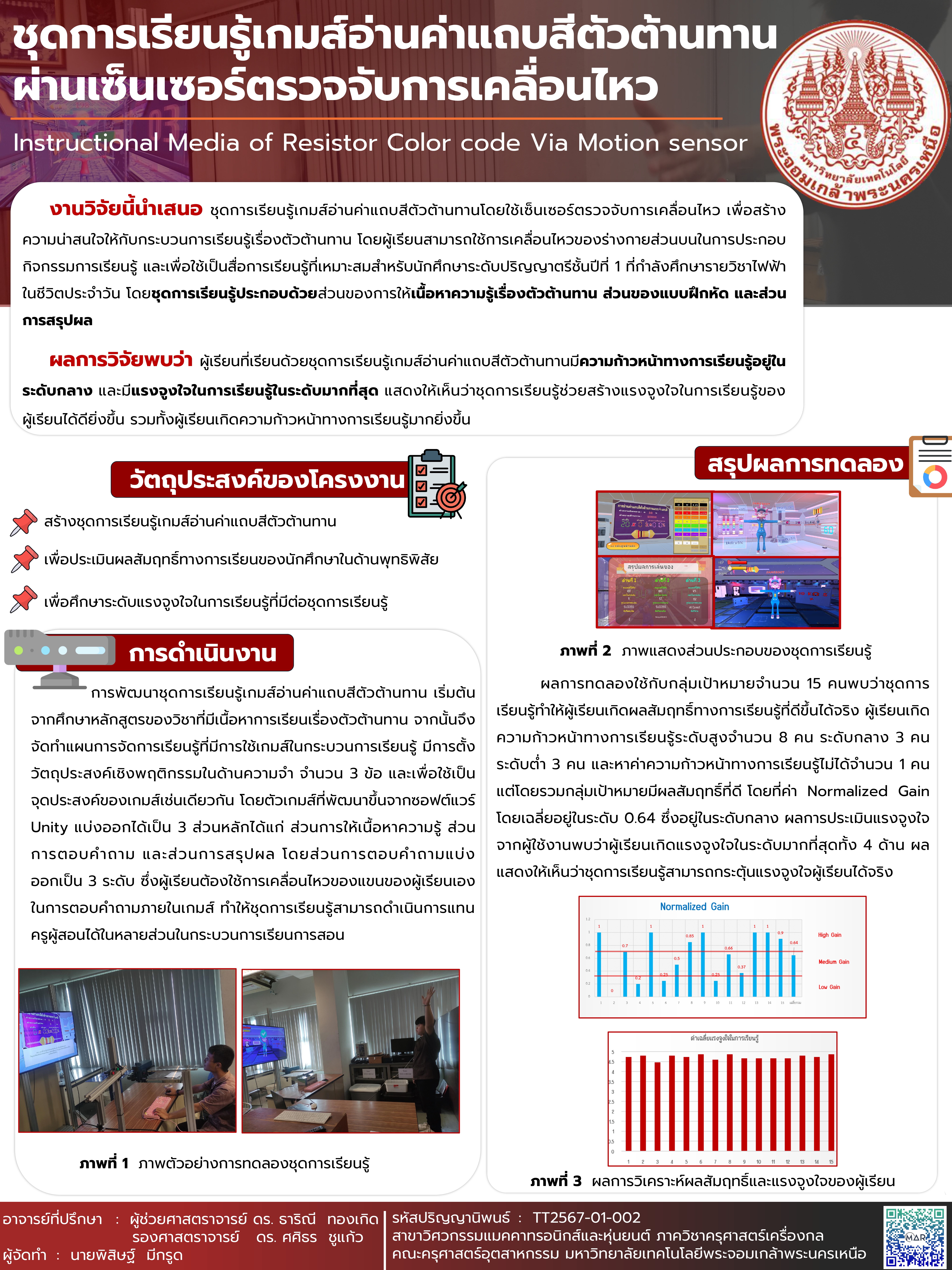 ชุดการเรียนรู้เกมส์อ่านค่าแถบสีตัวต้านทานผ่านเซ็นเซอร์ตรวจจับการเคลื่อนไหว