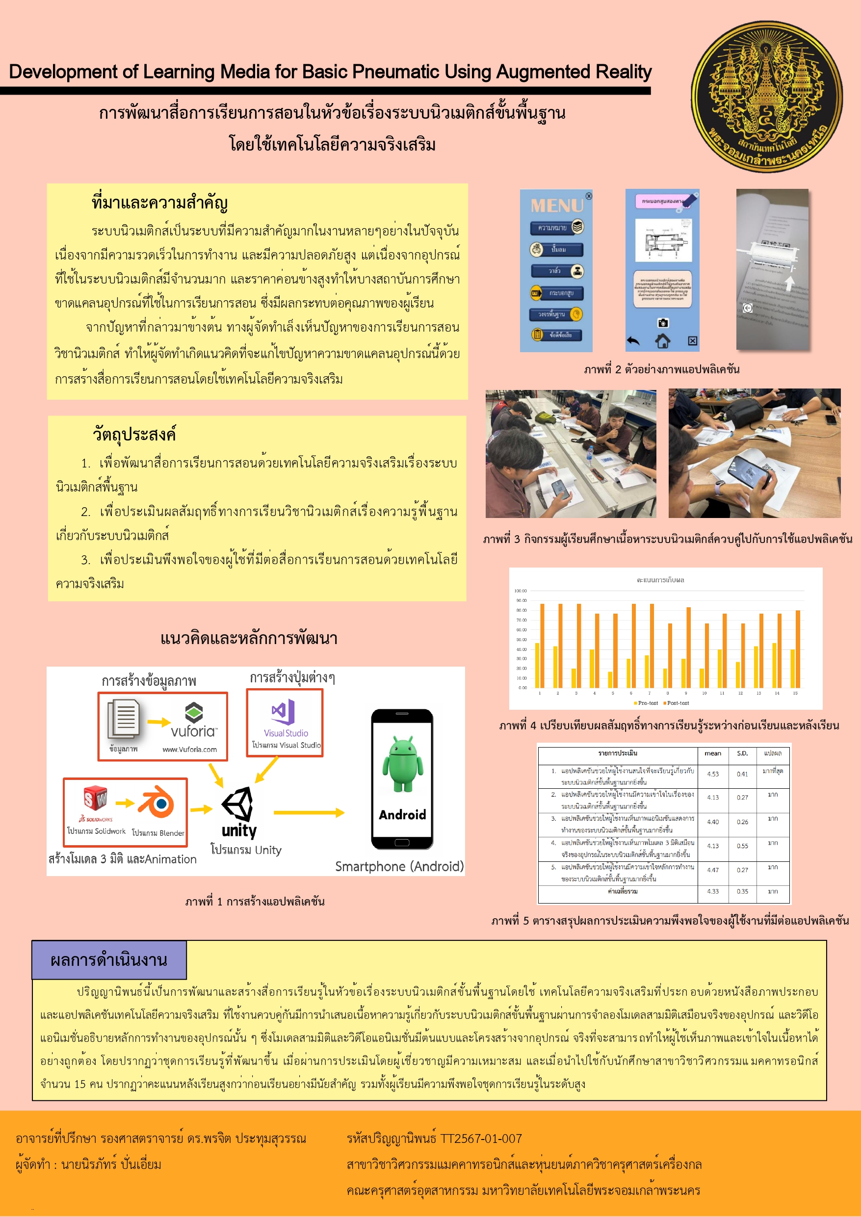 การพัฒนาสื่อการเรียนการสอนในหัวข้อเรื่องระบบนิวเมติกส์ขั้นพื้นฐานโดยใช้เทคโนโลยีความจริงเสริม
